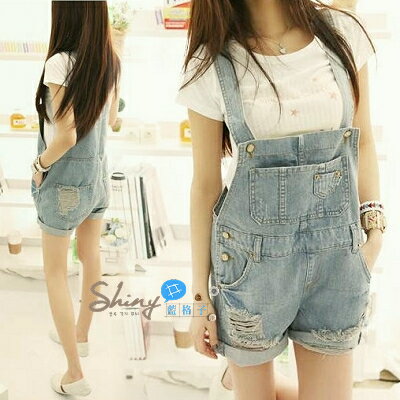 排行榜【T18538】shiny藍格子-動感率性.時尚磨破捲邊造型吊帶牛仔短褲超值獨家部落客,
